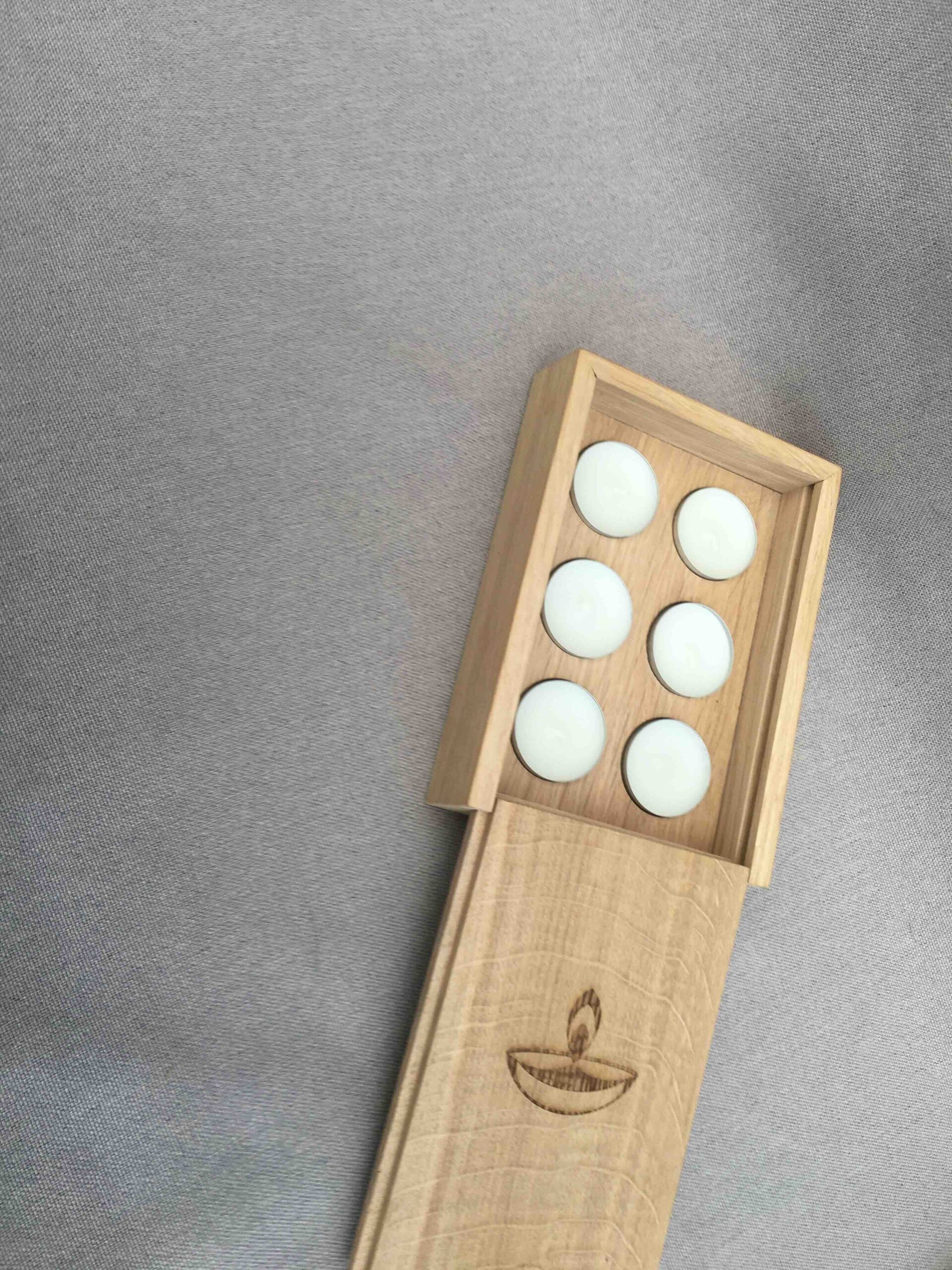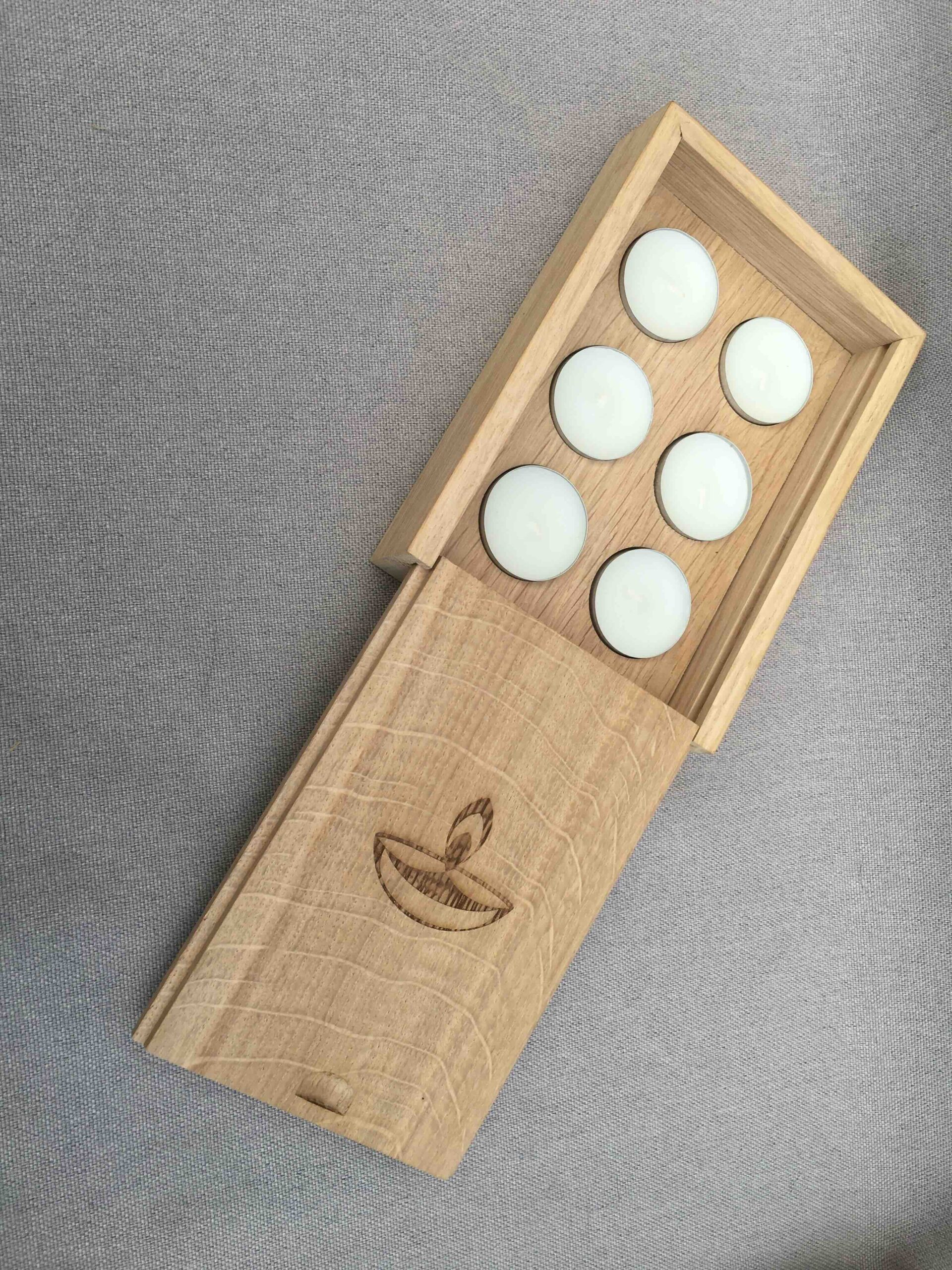 A l’intérieur du coffret se trouve 6 bougies plates rondes.